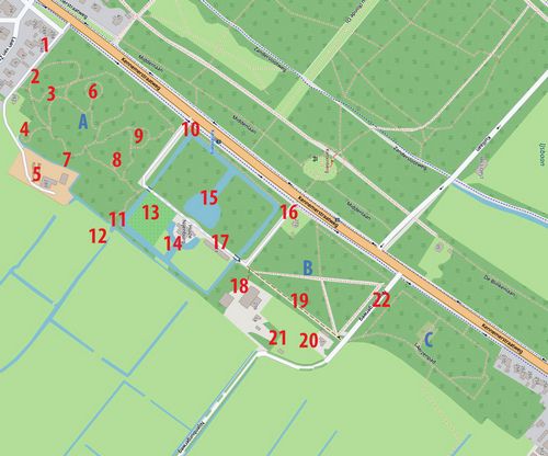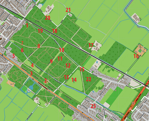 Verklaring nummers op plattegrond Heilooerbos (zie plattegrond hierboven)